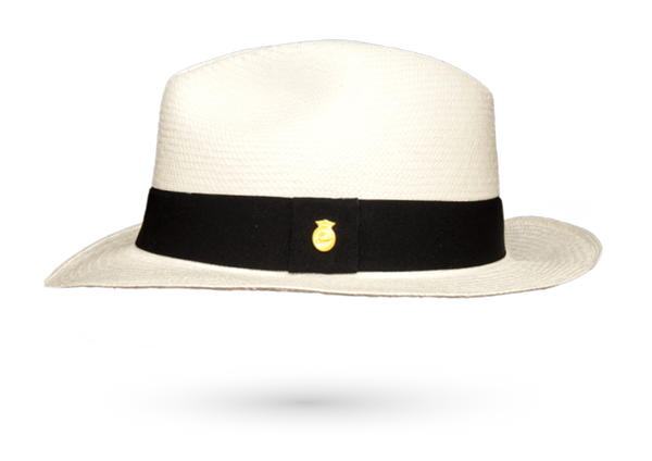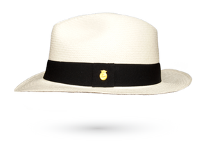 - Hatband: Black grosgrain ribbon with our iconic golden pin fixed on the side, adding distinction to any summer outfit