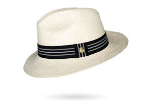 Hatband: Stripes grosgrain ribbon with our iconic metallic golden pin fixed on the side that adds distinction to any summer outfit