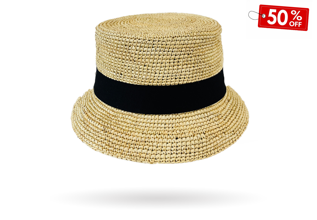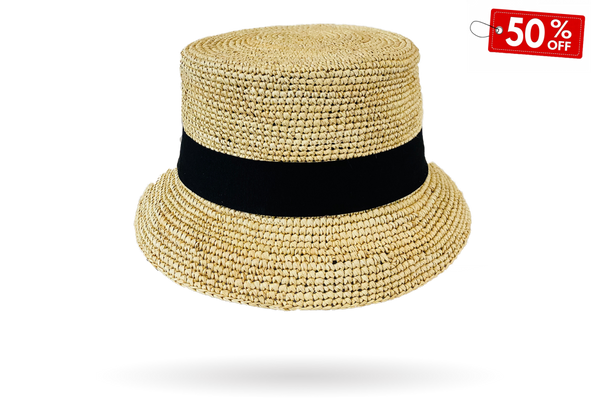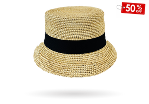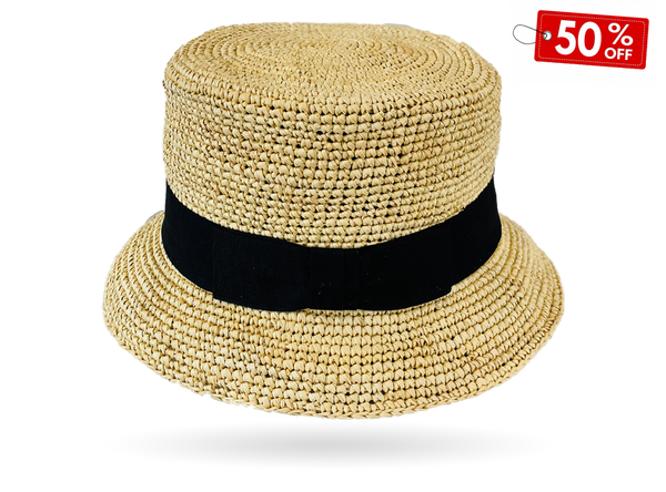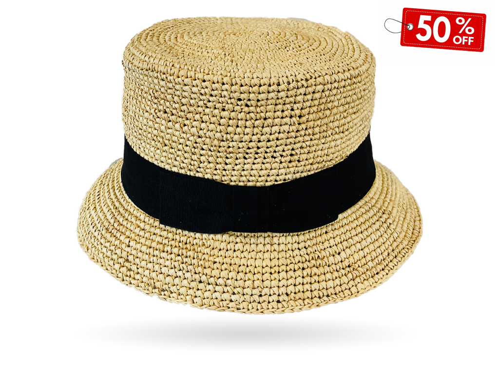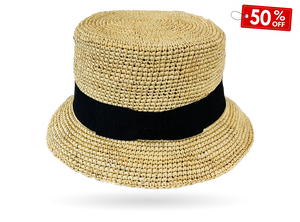 Down Brim 'Mini Bali' Bucket Straw Crochet Panama Hat for Girls
