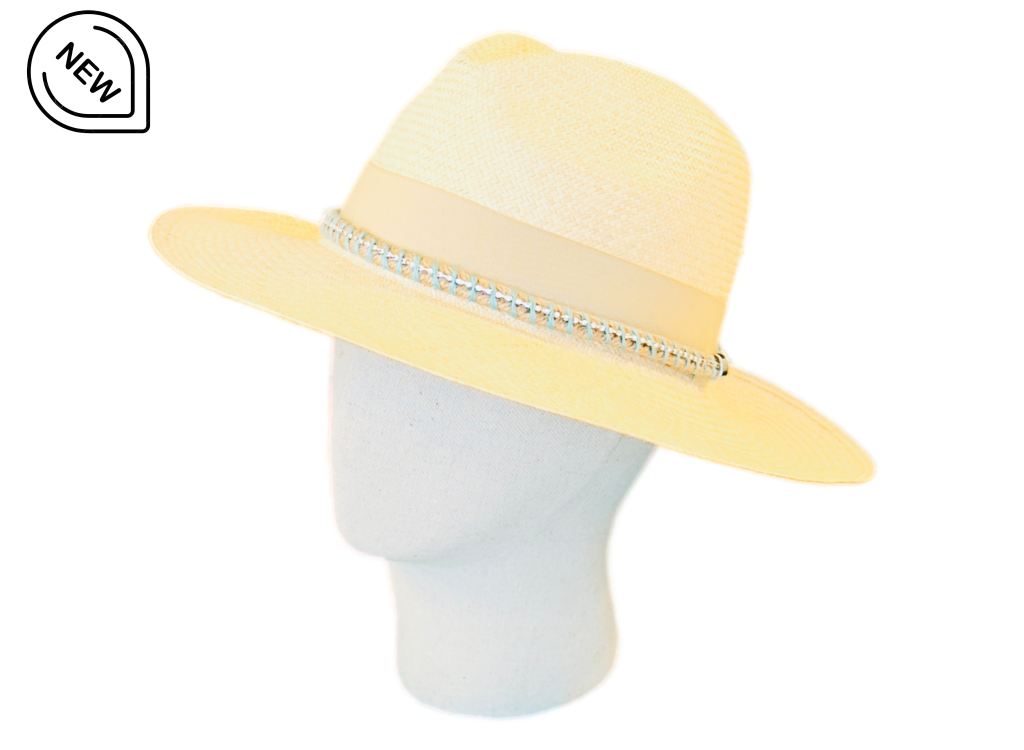 NEW! ADJUSTABLE SIZE FINE PANAMA HAT 'BLING' MEDIUM BRIM (9CM)
