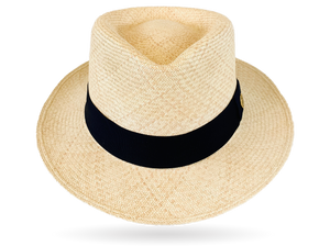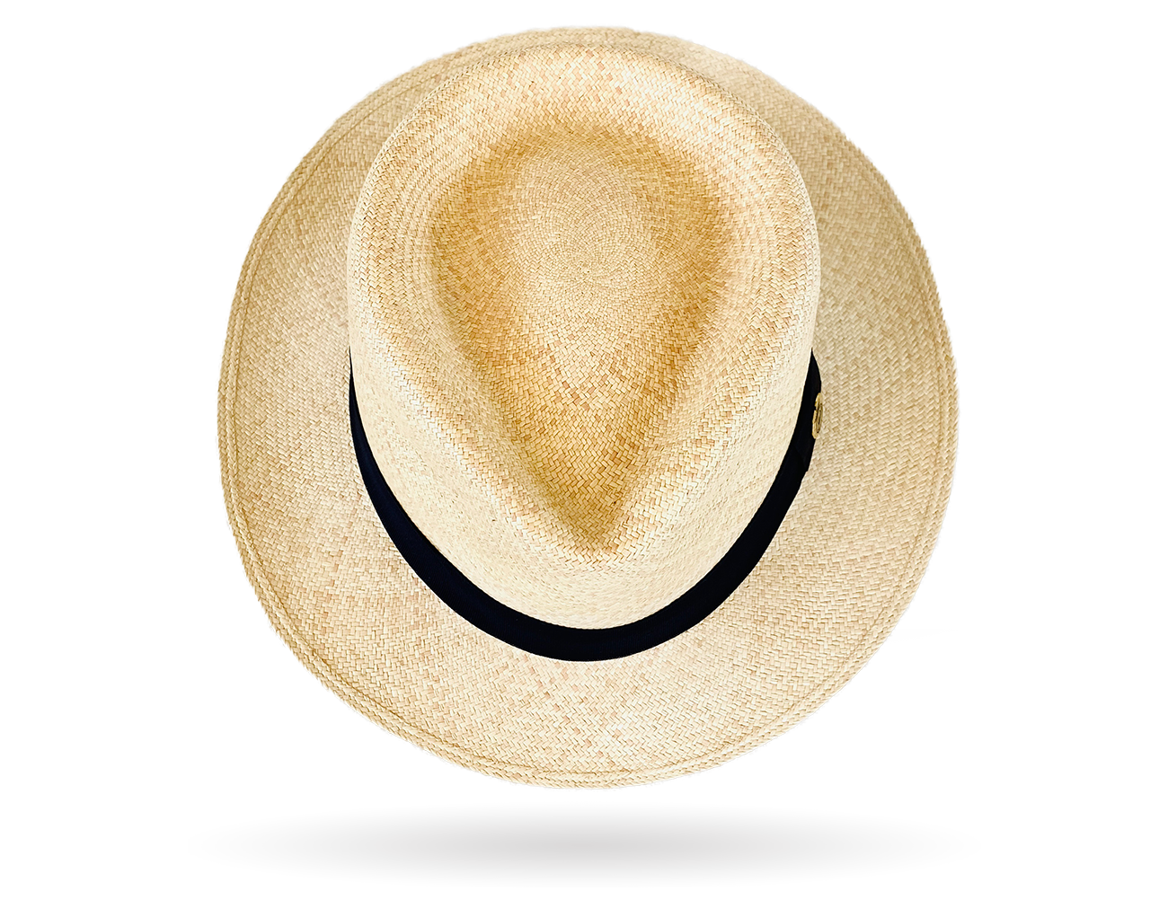 Authentic Montecristi Panama hat performed entirely manually in Montecristi - Ecuador by one of the few artisans that can craft at the highest quality standards. Each of these hats takes approximately fifteen days to be woven by hand