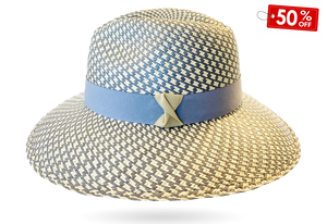 FINE PANAMA HAT 'MAISON CUENCA' BLUE DUCK EGG DOWN WIDE BRIM (10CM)